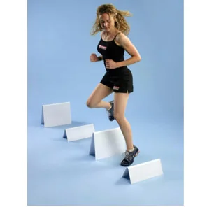 Stroops Mini Hurdle – For centuries, athletes have run hurdles to improve their stride and agility. Now, Stroops has taken this timeless tool and loaded it with 21st-century features. Stroops hurdles offer a full range of plyometric training benefitsfrom improving stride frequency and foot placement to strengthening the dorsiflexion muscles used in sprinting. Invest one time in a set of lightweight, stackable and portable hurdles designed to withstand years of abuse. Unlike tubular or flat PVC hurdles, which break easily, Stroops hurdles are made of highly durable yet pliable plastic which is forgiving when stepped on. The smooth white surface allows coaches to communicate to the athlete using dry erase markers to write instructions on them. Hurdles are 16 inches wide and are available in either 6 or 12 inch heights.