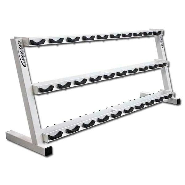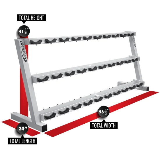 Legend Fitness 3191 15-Pair Pro-Style Dumbbell Rack – Store 15 pairs of Pro-Style, Solid Steel or Solid Head dumbbells of any size with this 3191 three tier dumbbell saddle rack by Legend Fitness. Whether your definition of