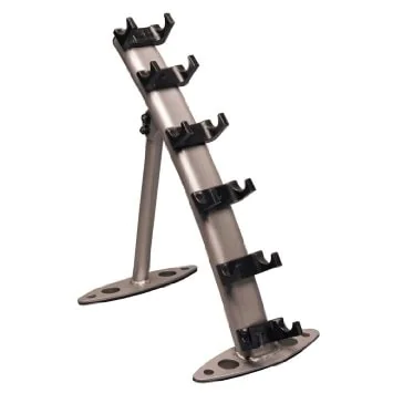 - 6 vertical storage rungs to hold 3 pairs of equal sizes or 6 individual sized increments up to 15 lbs.