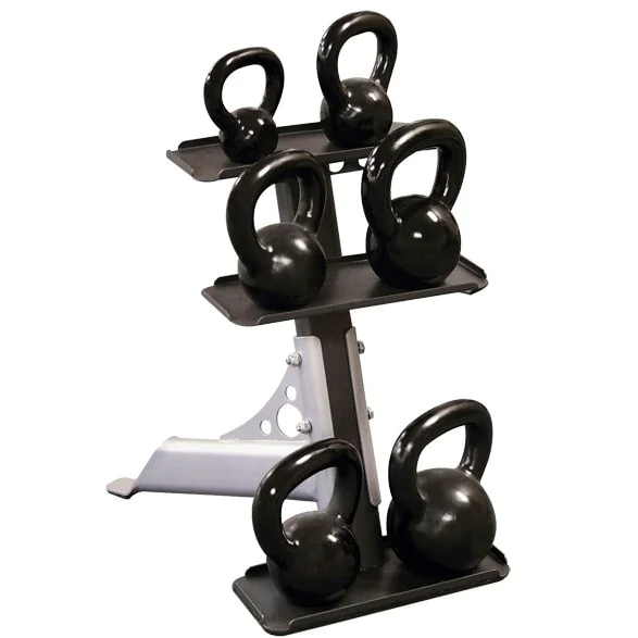 Body-Solid 3-Tier Kettlebell Rack – The Body-Solid GDKR50 provides storage for 6 total kettlebells. The perfect storage companion for your kettlebells, the GDKR50 is compact, stable, and affordable.