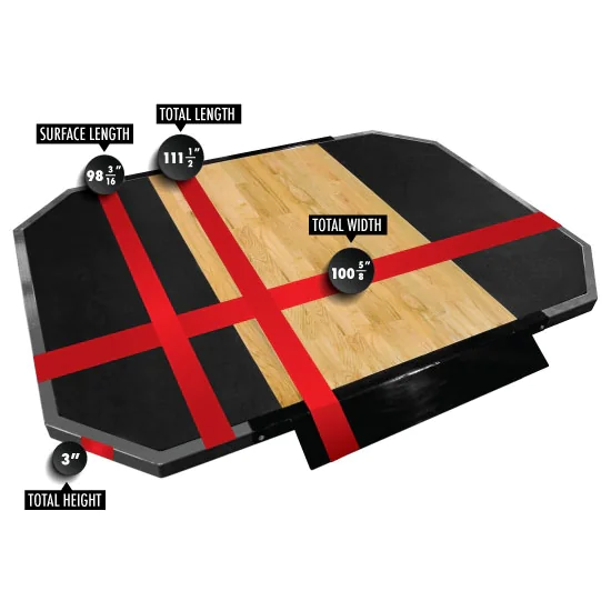 3/4 thick rubber mats are cut with a water jet for a precision fit and manufactured to withstand the punishment it was built for. The tongue & groove oak footing area is hand-assembled in our factory and treated with the most durable finish you’ll find anywhere.