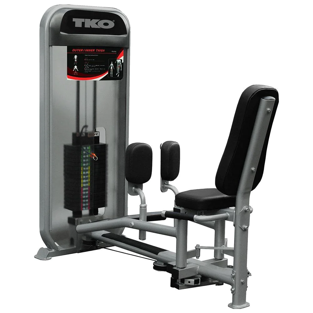 TKO Achieve Duals 8807 Inner / Outer Thigh – The Achieve Duals 8807 Inner Thigh and Outer Thigh Machine from TKO Sports and Performance is a light commercial rated gym machine with selectorized weight stack and exercise combo functionality to provide the user and facility premium workout versatility and space efficiency. The TKO Achieve Dual Inner / Outer Thigh provides a combination of exercises in a compact space that includes adduction movement for inner thigh muscles and abduction movement for outer thigh and hips. An 11 position cam adjustment allows this machine to accommodate a wide range of users and to provide optimal pre-stretch for either movement. Quick and easy transition from inner to outer thigh movement means the exerciser can stay seated without the need to exit the machine. Reclined back pad and handlebars keep the exerciser secure and comfortable. The shrouded weight stack is directly in front of the seat, allowing easy access to incremental weight changes between sets as well as offering a privacy “shield” during exercise.
