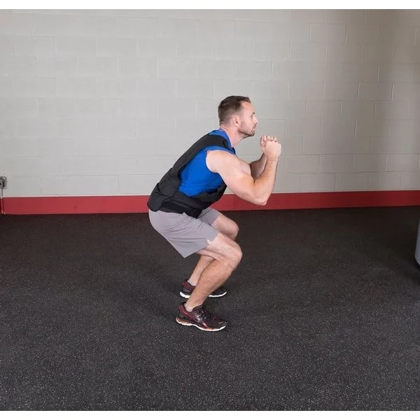 Body-Solid Tools BSTWVP Adjustable Weighted Vest – 20 lbs or 40 lbs – The BSTWVP20 and BSTWVP40 from Body-Solid are adjustable weighted training vests used to provide additional resistance over the exercisers own body weight during cross-training and athletic training for sports performance. Conditioning your body into working out with what it thinks is a heavier overall body mass than it is accustomed to will lead to increased strength, stamina, speed, lung capacity, power, and explosiveness. Muscles are taxed more and the heart needs to pump harder to support the extra weight during exercise. By tricking the body into working harder during periods of pre-season conditioning or general training, when the main event arrives and the vest is no longer worn, the muscular, cardiopulmonary, and respiratory systems all function at an enhanced level given that the body is no longer encumbered by additional poundage. A weight vest lets you add resistance to a high intensity interval training routine without compromising biomechanics since it hugs the upper body and allows the arms and torso to move and rotate freely during exercise. Weight training vests can be used in the gym when performing squats, lunges, dips, pull-ups, push-ups, burpees, and hand walks. A weighted workout vest is great for adding weighted resistance to your walking or running program for accelerated weight loss whether outdoors or at home on a treadmill or elliptical.