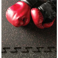 3/8″ Interlocking Colored Gym Flooring Uses – 3/8″ thick material is common among commercial gyms and clubs and is used frequently in weight stack machine areas and free weight areas. This material is very resilient and shock absorbent and will protect sub-floors and equipment from impact created from weight stacks as well as dropped dumbbells, barbells, kettlebells and weight plates.
