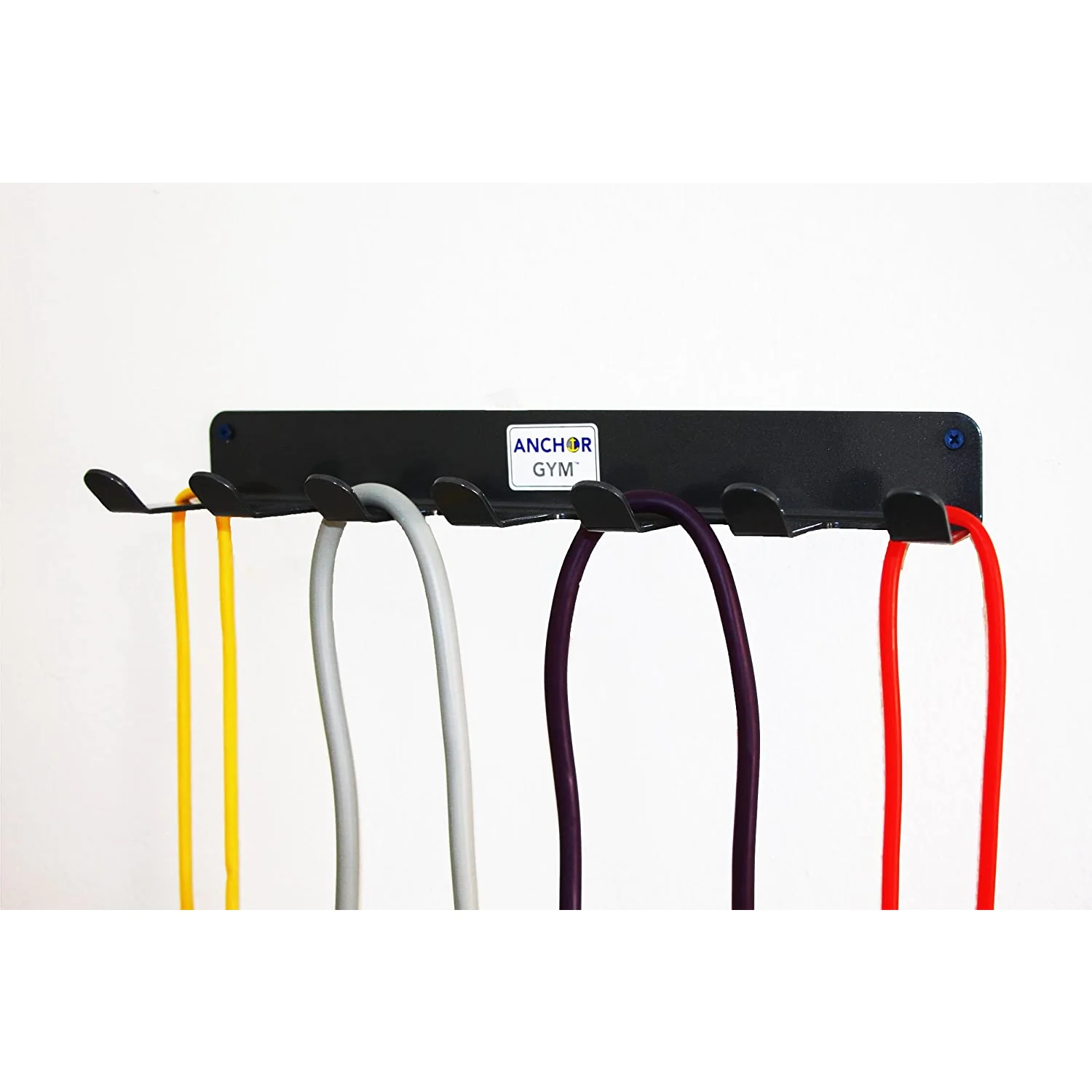 Anchor Gym 7-Prong Accessory Rack – The Anchor Gym AGAR Accessory Rack from Core Energy Fitness is an extra strong wall-mounted storage solution for fitness bands, resistance tubes, stretch straps, suspension straps, small aerobic dumbbells, large and small loop bands, jump ropes, and other exercise tools and hanging fitness accessories. Prongs are turned upward at ends to keep hanging accessories from slipping off.