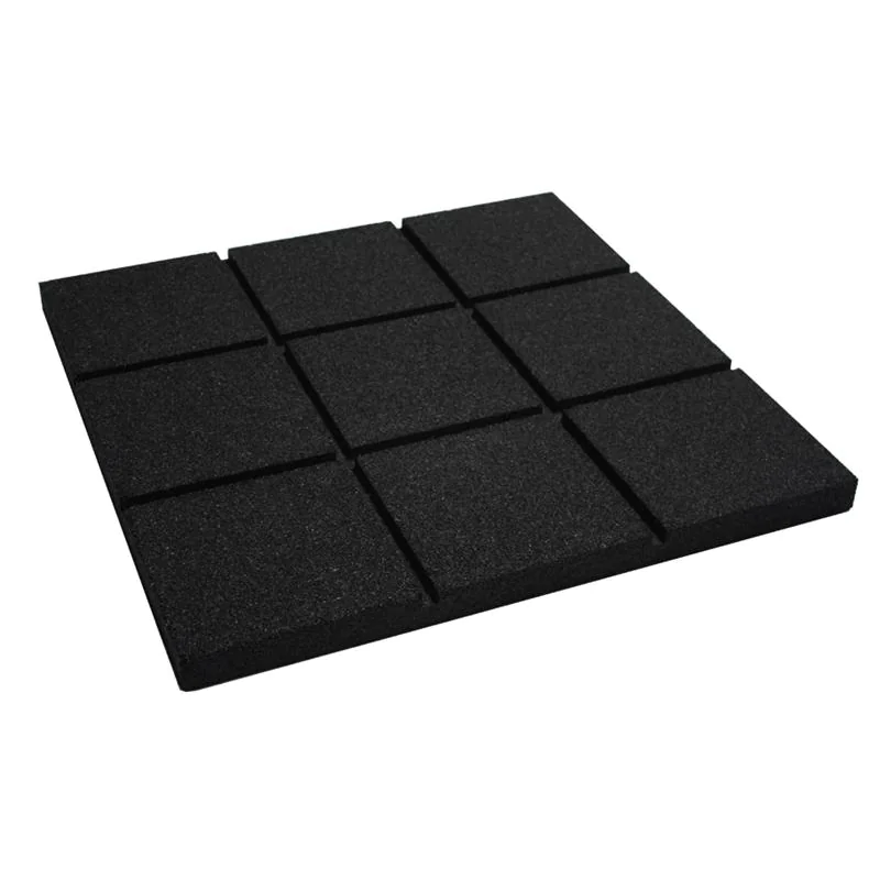 Ultimate RB Rubber Ballistic Tiles – For use in shooting ranges to reduce noise and to help with ricochets. Each ballistic tile is constructed with two different surfaces. The grid surface is installed facing outward in areas where the primary goal is noise reduction The flat surface faces is installed facing outward when ricochet reduction is the primary concern. The RB Rubber Ballistic Tiles are made from 100% recycled tire rubber. Price shown is per 2′ x 2′ x 1.5″ tile.