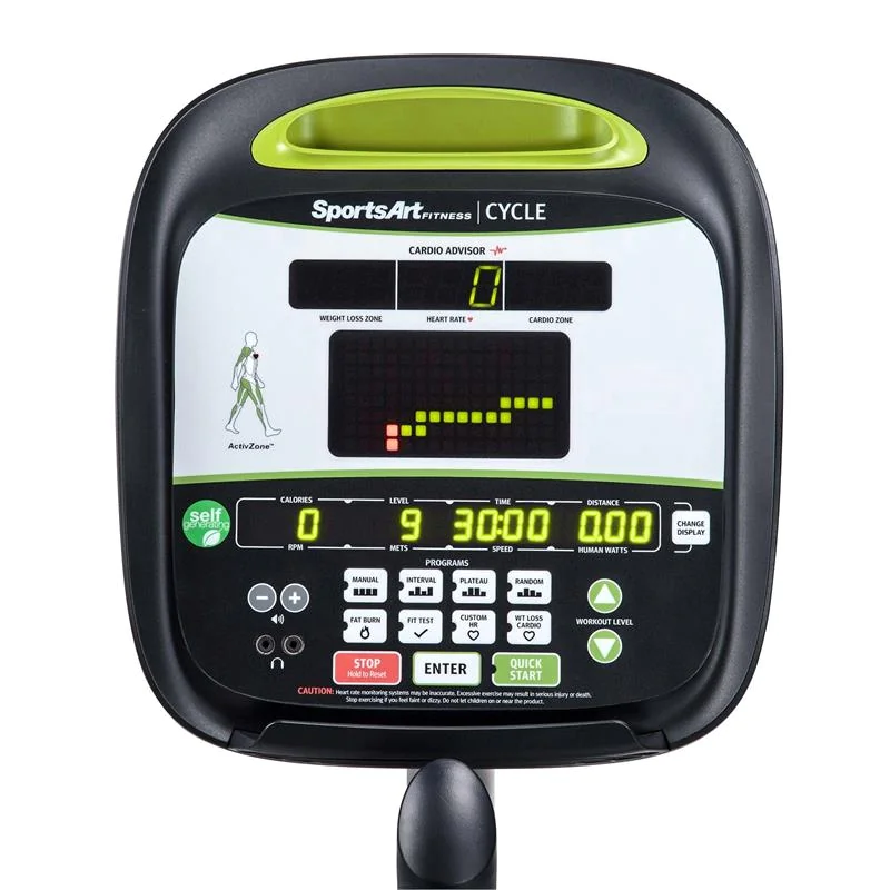 SportsArt C535R Recumbent Cycle Foundation Series – SportsArt cycles are self-generating; no-outside power source required. Users will enjoy the built in wireless Polar® HR receiver and multiple language options (English, Spanish and French).
