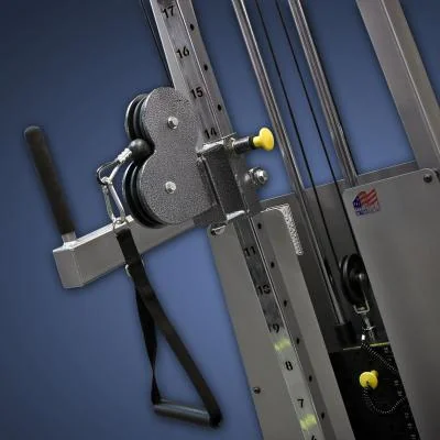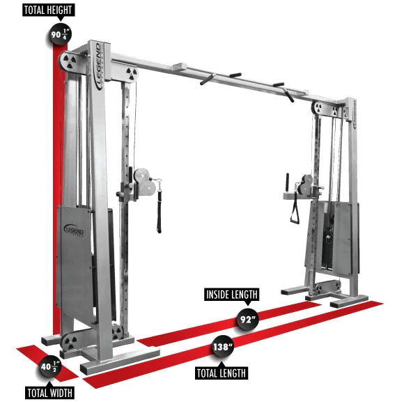 Legend Cable Crossover with Adjustable Pulley Machine – In todays busy world, the ability to multi-task is a plus. Especially if you do it well. The Adjustable Pulley Cable Crossover is the number one candidate for versatility. The handle starting position goes from the ground to the ceiling in three-inch increments and works over a chrome-plated adjustment tube with laser etched numbers that ensures a smooth movement. The design is incomparable, the construction uncompromising, the only limit is your imagination. Features two 23 position chrome adjustment columns, 4 x 2 tubing and a dual position chin up bar.