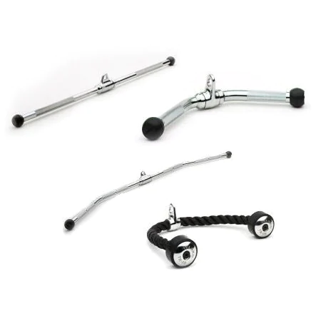 | RSB-34 Revolving Straight Bar, 34 in. For front and back lat pull-downs, bicep curl, and tricep extension work. IVANKO Cable Attachments feature: Weight: approx. 9 lbs. | |