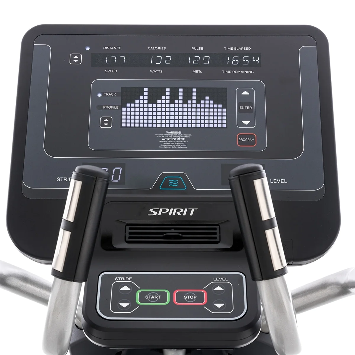 Spirit Fitness CE850 Adjustable Stride Elliptical Trainer – The CE850 Adjustable Stride Elliptical Trainer by Spirit Fitness is a commercial cross-trainer used for cardiovascular exercise to promote weight loss and endurance and increase cardiopulmonary fitness. The Spirit Fitness CE850 combines a robust and compact front-drive elliptical design with the ability to customize your ideal stride motion from 18 to 24 inches at the touch of a button on the multi-position hand grips. The CE850s narrow 2″ pedal spacing (Q-Factor), large cushioned pedals, and ability to simulate a walk/jog/run through electronically adjustable stride adjustment combine to give you the ultimate cardio workout for your users. The CE850 is commercial rated for use up to eight hours a day for any non-dues paying facility such as a hotel fitness center, multi-housing recreation room, rehabilitation clinic, fire department or police department workout room, community rec center, military base gym, government embassy, garage gym, or home fitness studio.