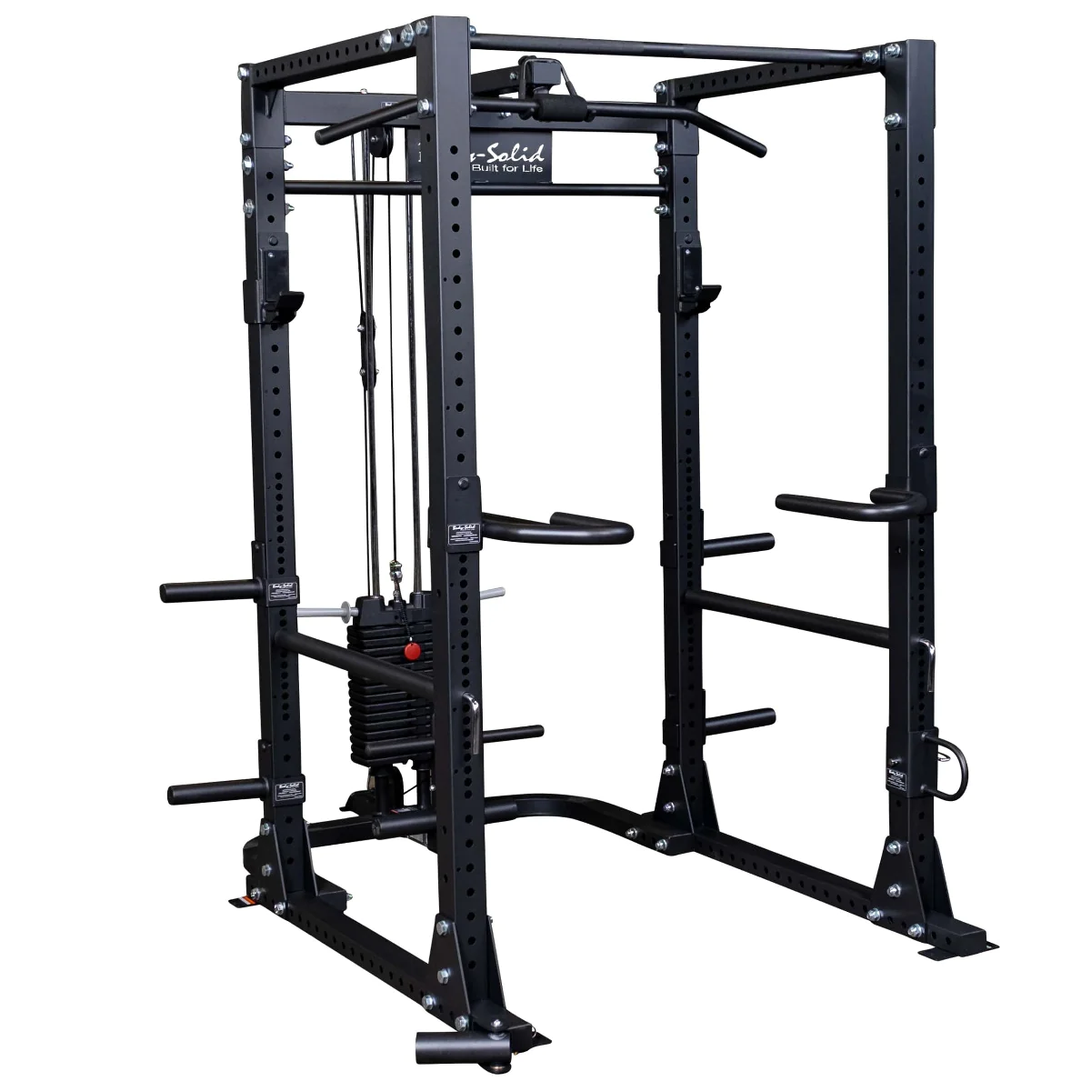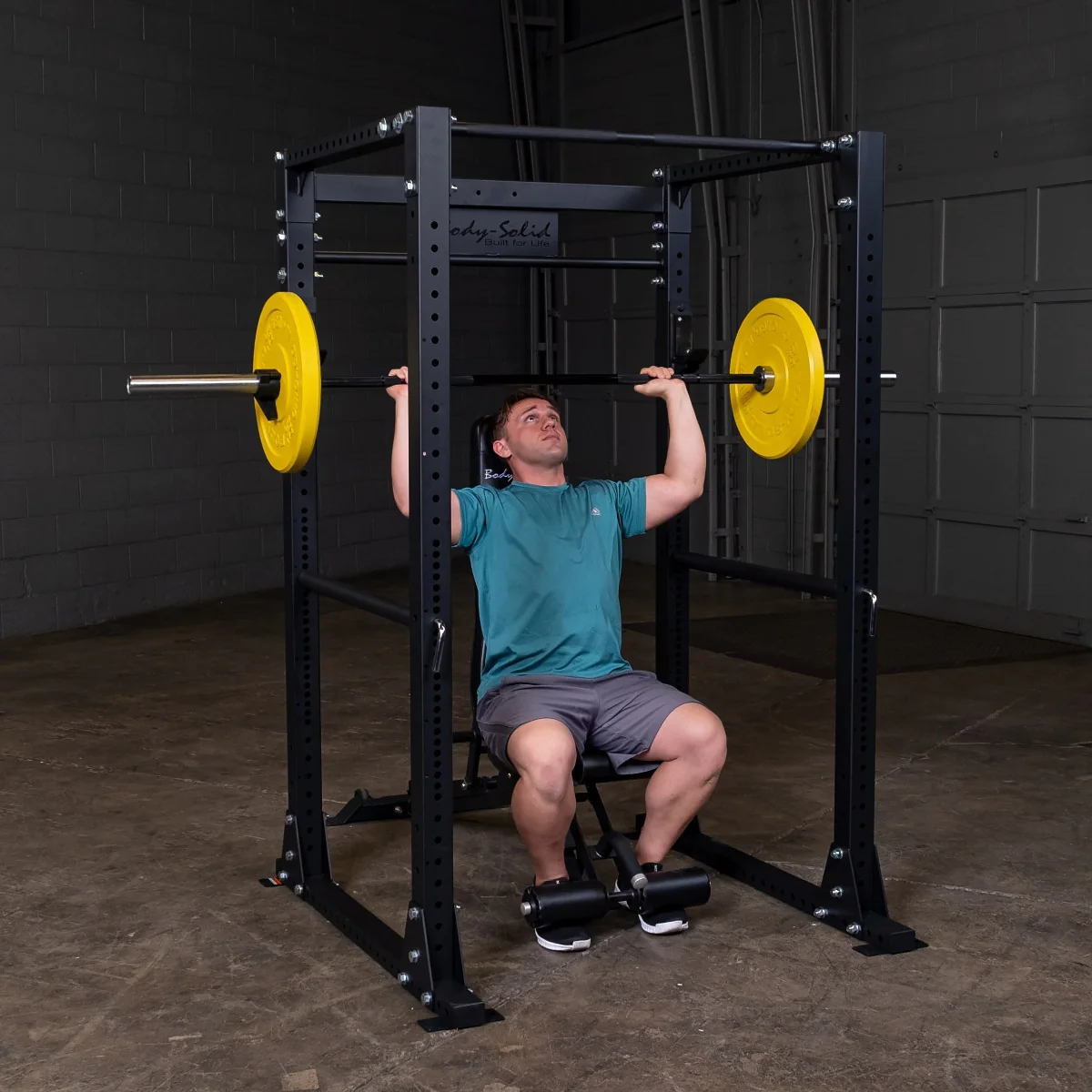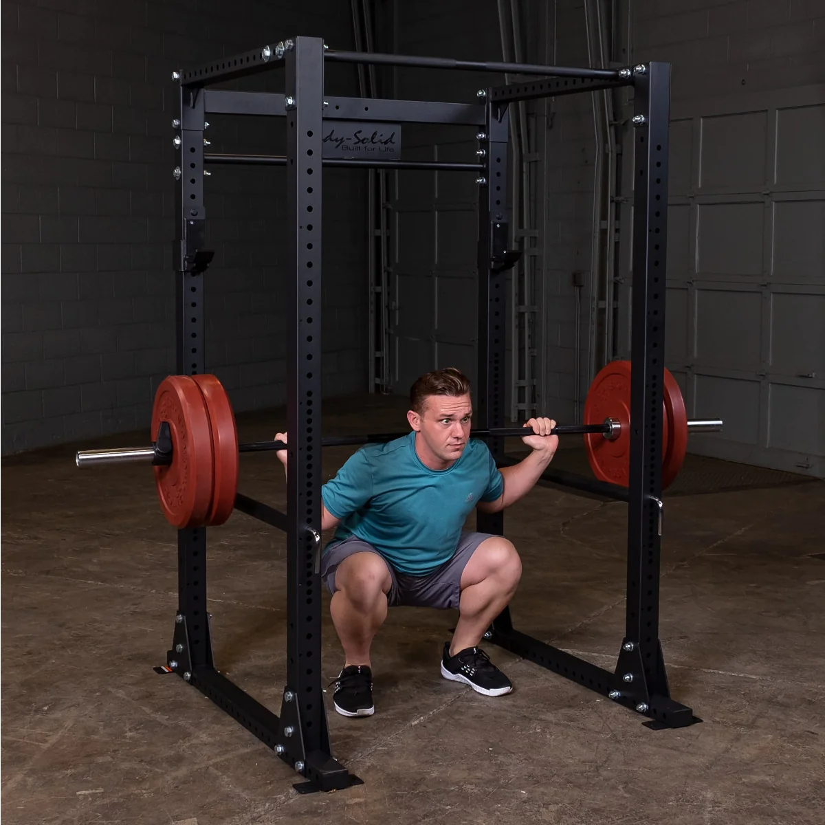 Body-Solid GPR400 Commercial Power Rack – The GPR400 Power Rack by Body-Solid is a heavy-duty commercial rated squat cage designed for multi-use in a variety of applications including home gyms, garage gyms, commercial strength training facilities, sports team and high school weight rooms, and more. Constructed with a 11-gauge steel frame, 3 x 3-inch uprights, and oversized industrial-strength hardware, the GPR400 can handle whatever you throw at it. With its 1000 pound capacity, it is built to withstand the intensity of heavy powerlifting and weightlifting as well as frequent group training.