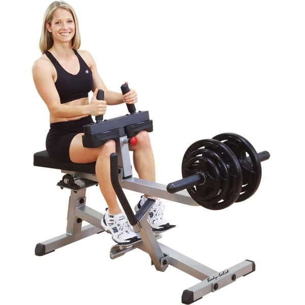 Body-Solid GSCR349 Commercial Seated Calf Raise – A combination of user-friendly ergonomic design and advanced biomechanical engineering, the GSCR349 was created to increase calf muscle interaction and speed the rate of development. This is achieved by the use of a unique foot platform design that eliminates stress compression on the ball of the foot while providing maximum range of motion for deep muscle fiber penetration. The weight carriage is designed for a 3:1 weight ratio and pivots on precision pillow block and sealed ball bearings for smooth friction-free movement through heavy-duty calf-blasting workouts. In order to carry the heaviest loads, the main frame is constructed of 2″ x 3″ 11-gauge high-tensile strength steel, making the GSCR349 perfect for high traffic, heavy use gyms and clubs.