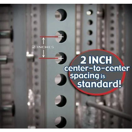 Each upright has (30) adjustments that are 2-inch spaced and laser numbered. This promotes a precise adjustment of either the J-hooks or safety bars. A 48 x 48 footprint is easy to work with. Plus the 88 overall Power Rack height can be reduced as needed for a small additional charge.