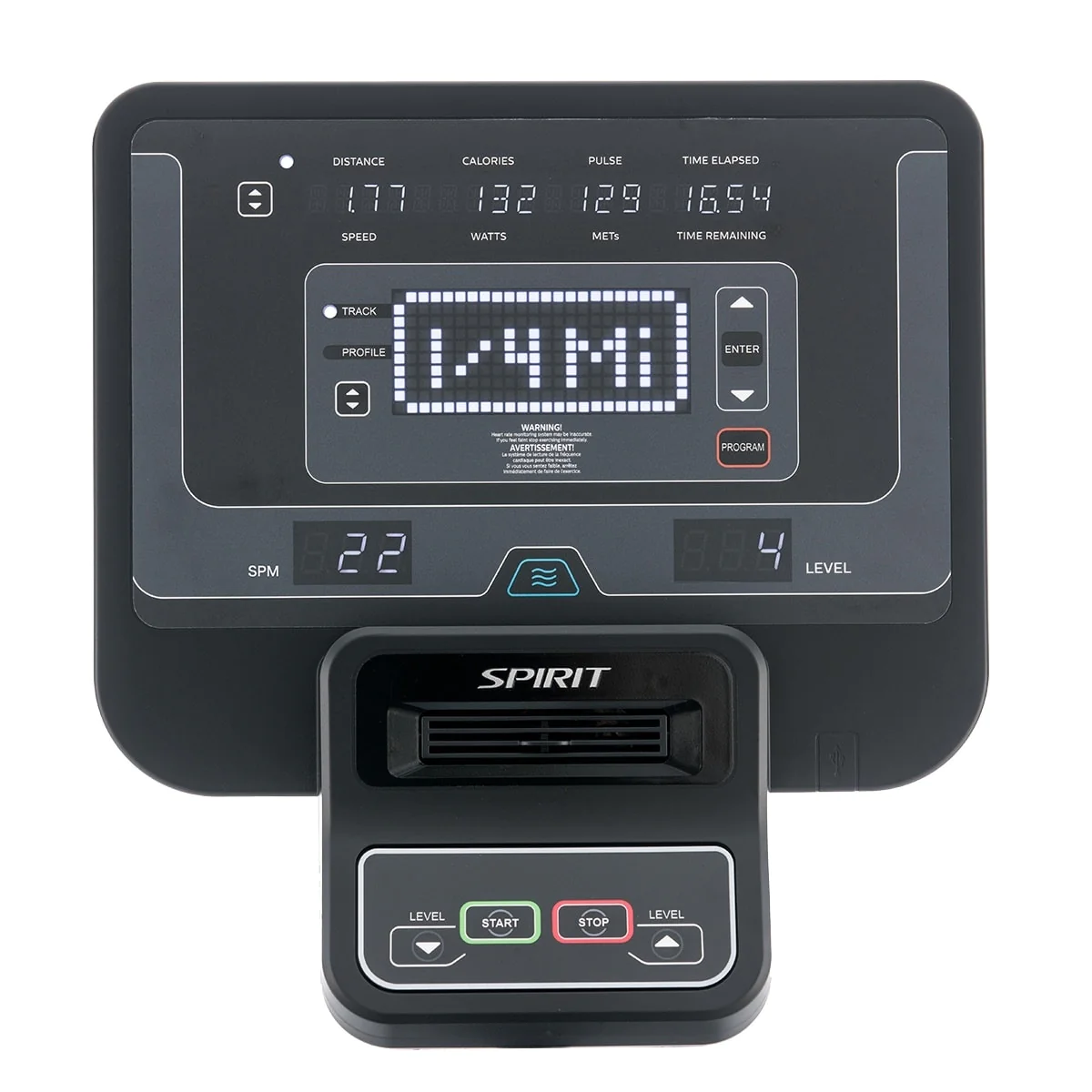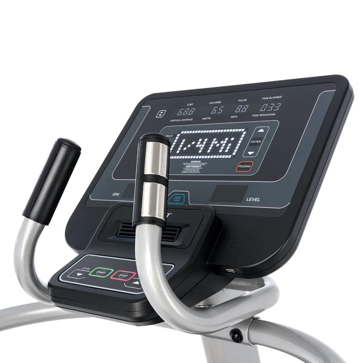 - Console Feedback: Steps, Vertical Distance, Calories, Watts, Pulse, METs, Time Elapsed, Time Remaining Program Profile, SPM, Level