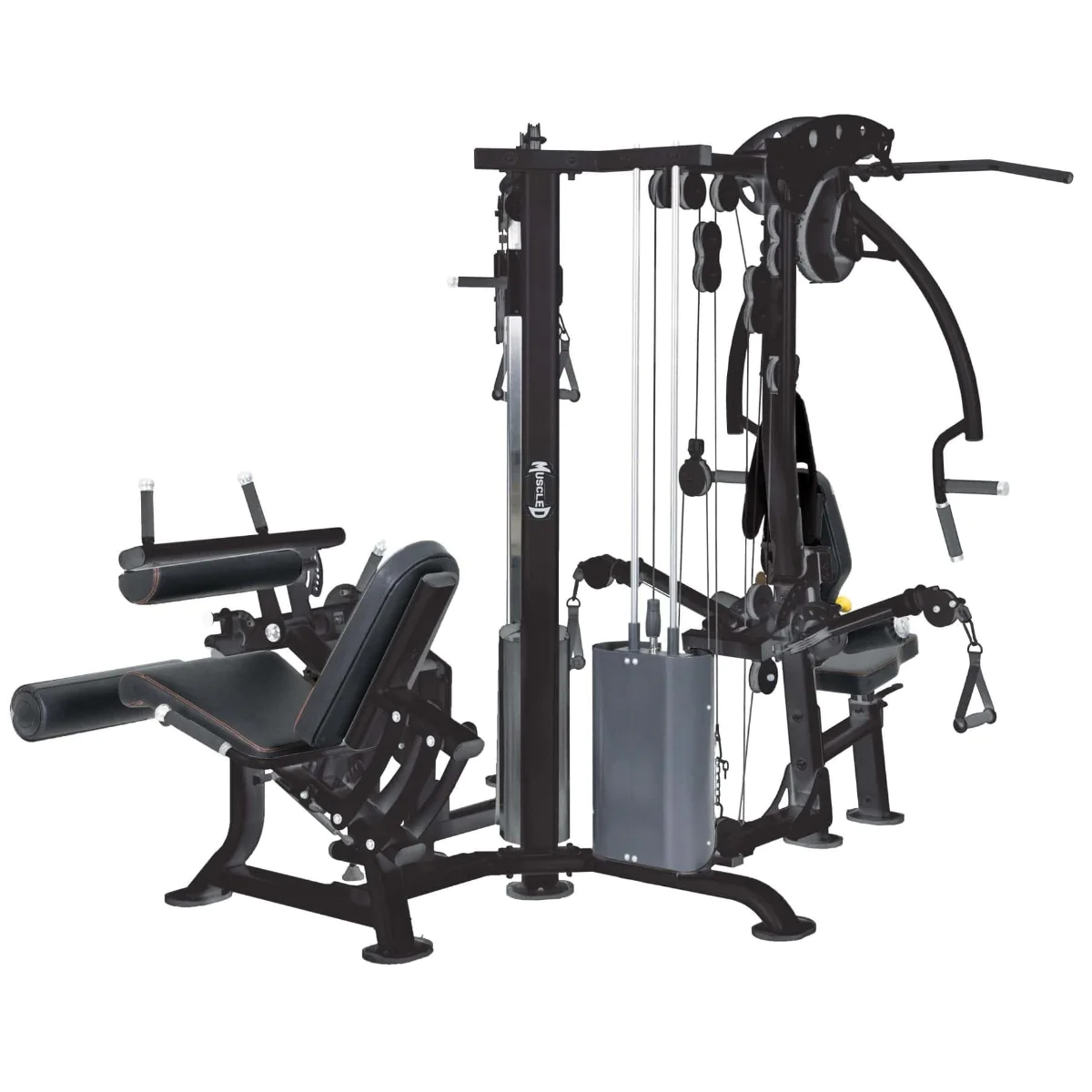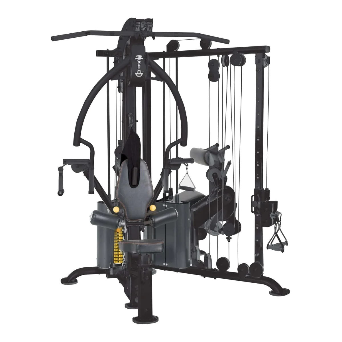 Muscle D Fitness Compact 2 Stack Corner Multi Gym – The MDM-2CM Corner Multi-Station Gym is a space-efficient cable machine gym which allows convenient placement into corners and other smaller spaces when workout area may be tight or more limited in your home gym, hotel fitness center, or apartment complex workout room. Because the MDM-2CM has dual weight stacks, two exercisers can work out on the machine at the same time using different stations. Perform a countless variety of exercises including chest press, seated row, chest cable crossovers, lat pulldown, ab crunches, tricep press, one arm shoulder press, upright row, inner/outer thigh and glute kicks, single arm cross chest pull, leg extension, and seated leg curl. Smooth, friction-free cable movements with selectorized stack resistance provide a commercial-quality feel at a fraction of the cost of multiple individual station machines. At only 7 feet tall when assembled, the MDM-2CM is designed with low ceilings in mind, meaning it can also fit into most basements or utility rooms. The pneumatic, adjustable seat on the Pressing station, along with the adjustable back pad, leg hold down, and calf and shin roller on the Leg station allow for a custom fit for users of all shapes and sizes. The MDM-2CM really brings the workout to you with so many effective and biomechanically correct exercises available in such a smaller yet convenient workout zone.