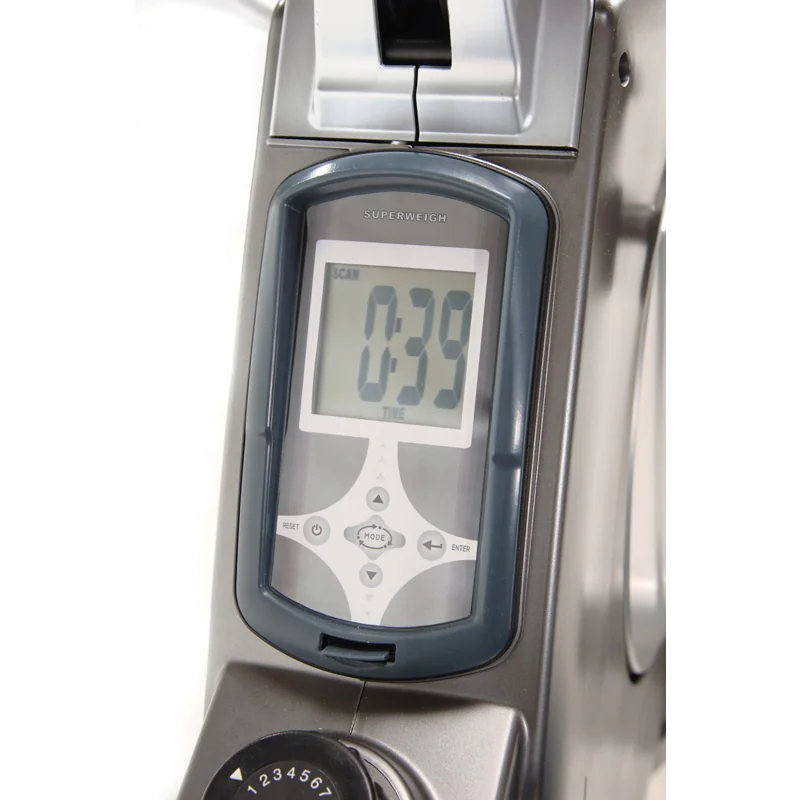 - Hand pulse sensor built into grips to measure heart beats per minute