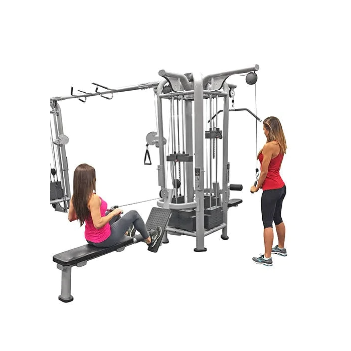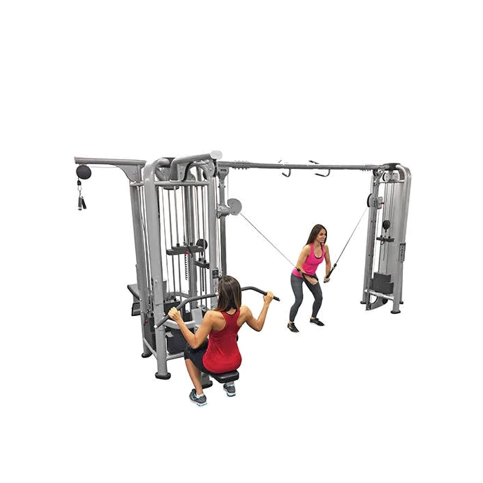 Deluxe 5 Stack Jungle Gym Version A – Muscle D Fitness (MDM-5SA) – The Muscle D MDM-5SA deluxe 5 stack jungle gym is designed to provide multiple workout stations for up to five users at once. The main difference between the MDM-5SA deluxe 5 stack jungle gym and the MDM-5R standard 5 stack jungle gym is that the MDM-5SA is 94” high vs 88” high, it includes heavier weight stacks throughout for providing more resistance and the entire unit comes in at about 500 lbs. heavier.