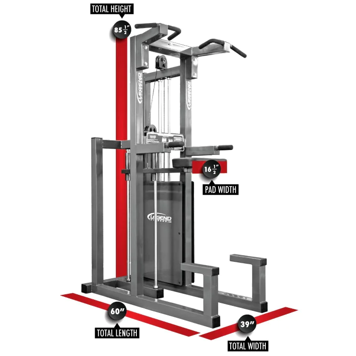 Legend Dip/Chin Assist Machine – For a complete chin up and dip station, look no further than the 933. Features include: all welded construction, a multi-grip chin up bar and rounded dip handles. A 200 pound weight stack makes this piece accessible and useful to beginning users as well as seasoned athletes.