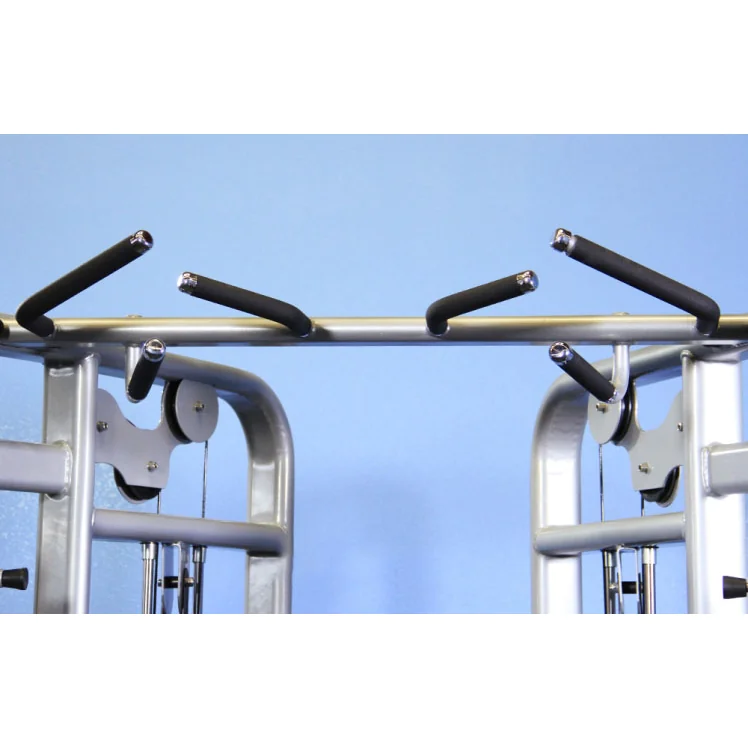 88″ Dual Adjustable Pulley Trainer – Muscle D Fitness (MDM-D88) – The Muscle D MDM-D88 Dual Adjustable Pulley Trainer is a versatile, total body exercise machine at a height of only 88” for locations with lower ceilings. The MDM-D88 includes two independent hi / low pulley columns for a large variety of upper and lower body exercises. Simply pop the pin and slide the pulleys to the desired height. Resistance is provided by two independent 200 lb. weight stacks that ride on hardened steel guide rods and are driven by high tensile strength steel cables and pulley wheels with sealed bearings. Three pairs of angled pull-up handles are included for performing bodyweight exercises. A pair of cable handles are included which allow you to perform cable crossovers, chest presses, lat rows, tricep extensions, bicep curls, wood choppers and many more cable exercises. Additional cable attachments are available at IRON COMPANY and will add to the training versatility of the MDM-D88.