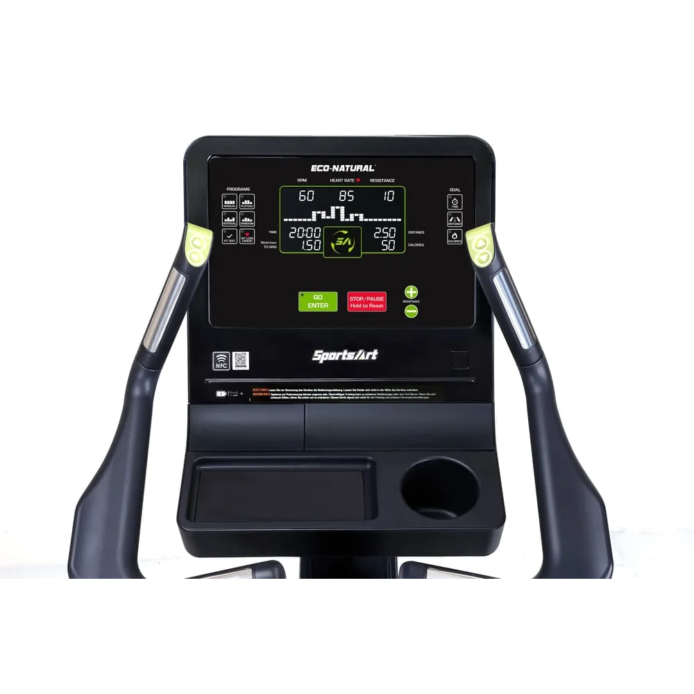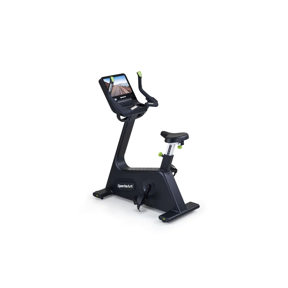 SportsArt C574U Elite Eco-Natural Upright Exercise Bike – The SportsArt C574U ECO-NATURAL Elite Upright Exercise Bike is a commercial quality exercise bike manufactured specifically for all day use in gyms and clubs. The sleek angles and practical features combine with a self-powered design to provide users with an engaging exercise bike workout. The C574U Upright Cycle features a low-profile shroud design for ease-of-access, vertically and horizontally adjustable seat, and fingertip resistance controls. Exercise bike workout programs include Manual, Random, Interval (3), Plateau, Fitness Program, Weight loss, Cardio with Heart Rate, RPM, Resistance, Time, Distance, Speed and Calories readouts.