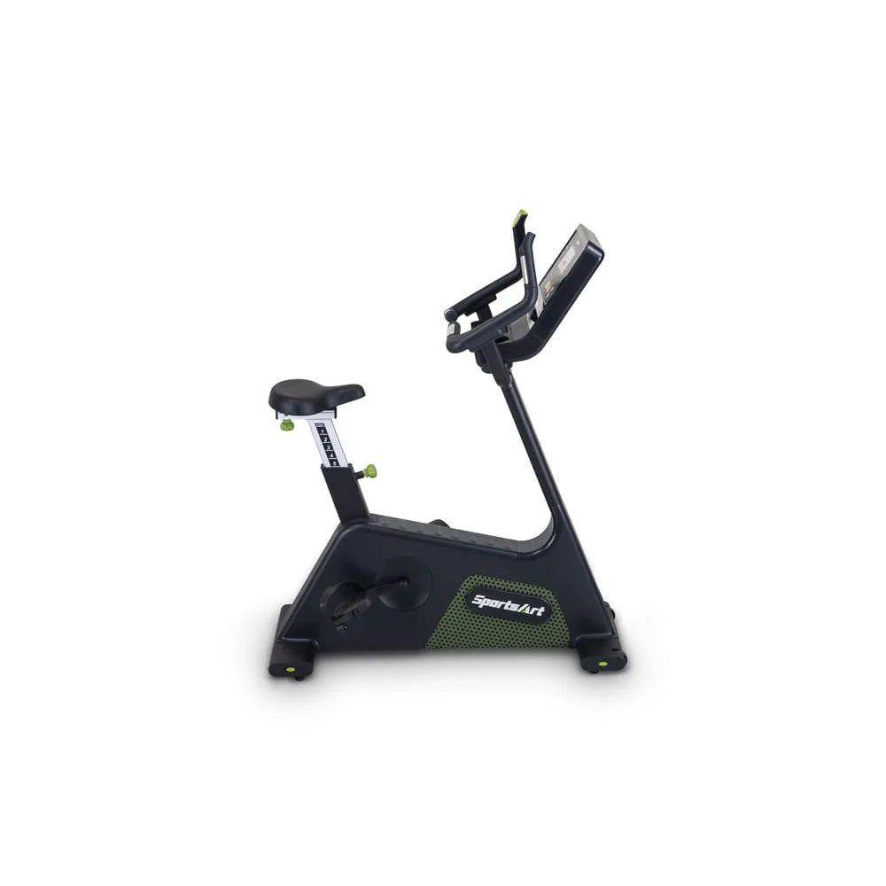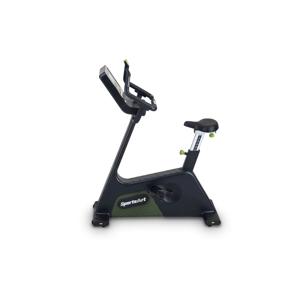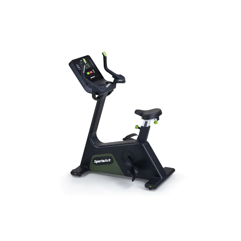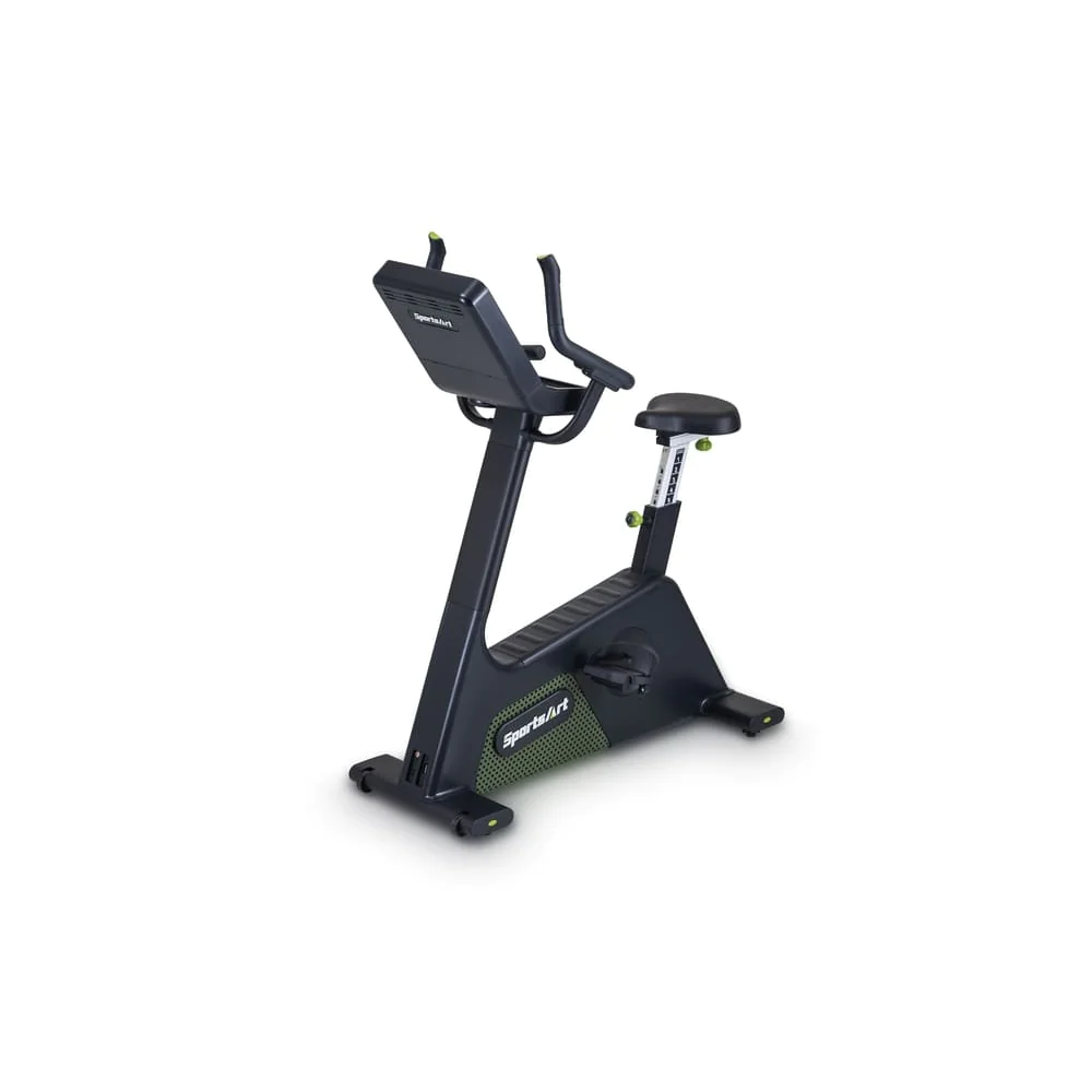 SportsArt G574U ECO-POWR Upright Exercise Bike – The SportsArt G574U ECO-POWR Upright Exercise Bike utilizes the state of the art ECO-POWR integrated inverter which makes it possible to harness human generated power and push it back into the electrical grid therefore lowering the carbon footprint of your facility. This environmentally friendly exercise bike features a low-profile shroud design for ease- of-access, vertically and horizontally adjustable seat, and fingertip resistance controls. Exercise bike workout programs include Manual, Random, Interval (3), Plateau, Fitness Program, Weight loss and Cardio with Heart Rate, RPM, Resistance, Time, Distance, Speed, Calories readouts.