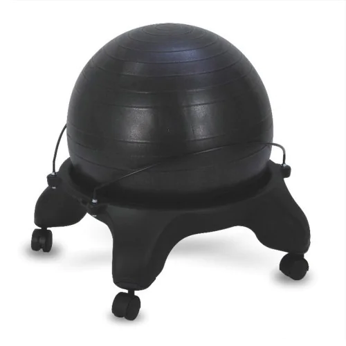 Aeromat Fitness Ball Chair Kit – The Fitness Ball Chair is an innovative new product designed for rehabilitation clinics, fitness centers or a home gym. The extra wide base with deep insets keeps the ball stationary while performing exercises. Ideal for performing core conditioning exercises. This package includes chair base, anti-burst ball, tube set and hand pump. Patented Steel bars secure the ball while performing exercises and the special caster design locks for performing exercises and unlocks for seating. Easy assembly required.