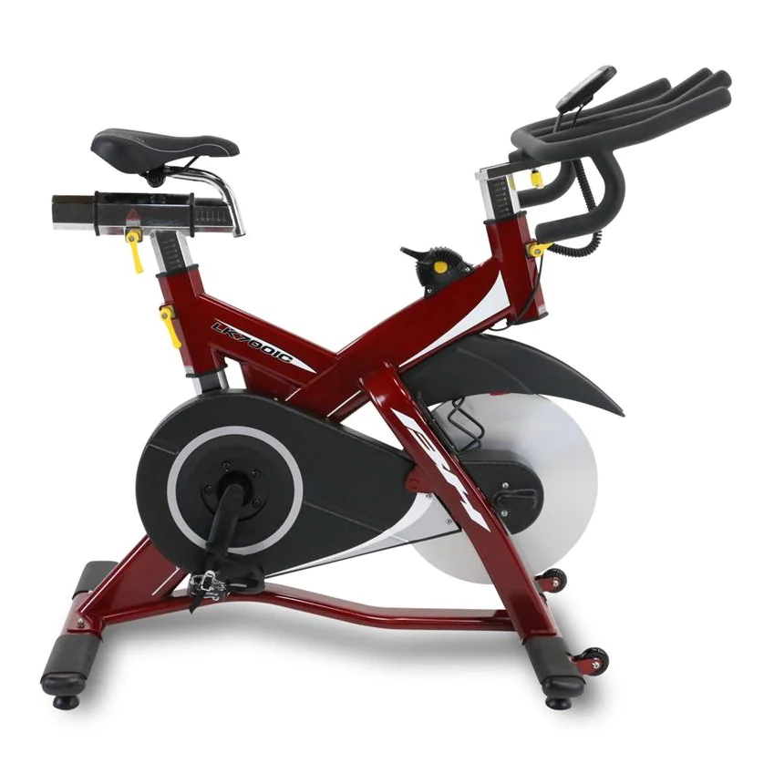 BH Fitness LK700IC Commercial Indoor Cycle – Who makes the best maintenance free indoor cycle for group fitness? With the LK Series LK700IC Indoor Cycle, BH Fitness has created an indoor cycling bike with unsurpassed durability and styling to match. The combination of a frictionless magnetic resistance system married with a smooth and silent belt drive creates an ultra-quiet workout while eliminating routine maintenance associated with common brake pad resistance systems and chain-drives. While a heavy weighted flywheel is great for building cycling momentum and creating a ride experience that feels like biking outdoors, it also makes the bike extremely heavy in a group instruction environment where bikes are often moved into place during class in a group fitness room, and then back against the perimeter of the room and out of the way when done. The LK700IC solves this issue with a large drive gear creating the riding equivalency of a 50 pound flywheel weight without having the associated physical weight. The result of this is a very manageable and maneuverable cycle under 100 pounds total weight that has all the frame strength and drive system durability but weighs 20 to 60 pounds less than comparable indoor cycling bikes using true 44 to 50 pound weighted flywheels. Quick and easy resistance changes simulate pedaling uphill with a constant, smooth feel like a traditional road bike. So, grab your cycling cleats or sneakers and discover how BH Fitness has created the next best thing to real-life biking.