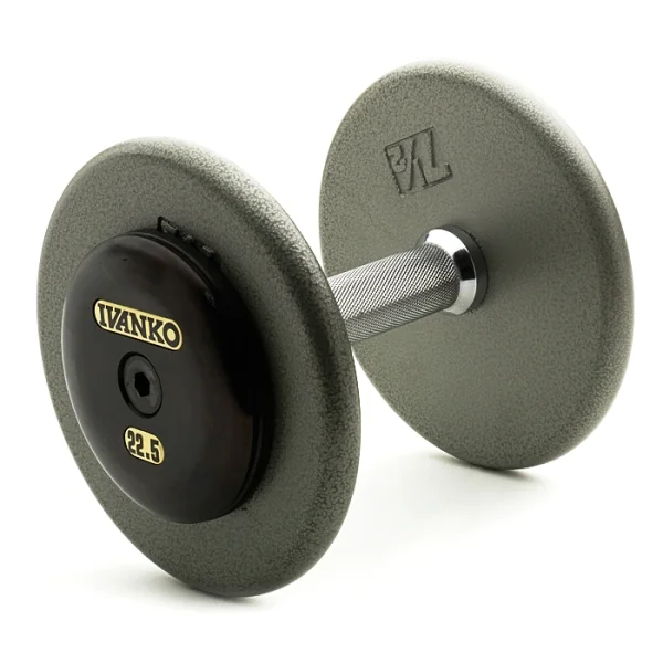 Ivanko Gray Machined Pro-Fixed Weight Dumbbells with Black End Plates – The Pro-Fixed Weight Dumbbell has been the workhorse of the fitness industry for years and can be found in commercial gyms all over the world.