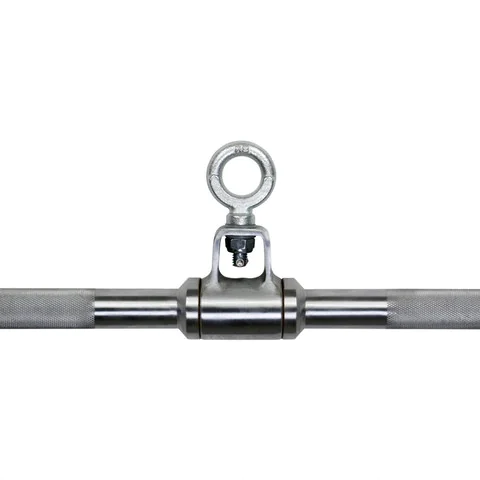 American Barbell Imported Revolving Solid Bent D-Lat Pull Down Bar 34″ – This hard chrome solid steel gym cable attachment series was originally designed and distributed by GP Industries, and continues to be produced today under the American Barbell brand name with the same industry-respected engineering and commercial quality. Use this lat row bar to add strength and thick muscle to the lats. Wide, parallel grip with bent bar all contribute to a better range of motion and the ability to squeeze and burn the lats for better results. American Barbell’s import line of cable attachments are 25.4mm (1.00″) diameter with a Hard Chrome finish. Precise knurling gives a sure comfortable grip. American Barbell specially designed cable accessories feature a multi-axis rotating swivel for ease of attachment and full functional use.