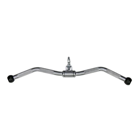 American Barbell Imported Revolving Solid Curl Bar – This hard chrome solid steel gym cable attachment series was originally designed and distributed by GP Industries, and continues to be produced today under the American Barbell brand name with the same industry-respected engineering and commercial quality. American Barbell’s import line of cable attachments are 25.4mm (1.00″) diameter with a Hard Chrome finish. Precise knurling gives a sure comfortable grip. American Barbell specially designed cable accessories feature a multi-axis rotating swivel for ease of attachment and full functional use. Use this cable curl bar attachment to perform bicep curls and tricep extensions.