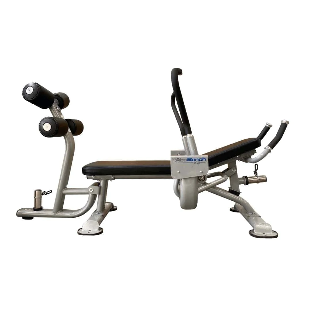 The Abs Company Abs Bench X3 – The AbsBench X3 is designed with dual pivot motion to naturally perform a double-crunch exercise using both a forward-crunch movement and a reverse-crunch movement. The forward crunch and reverse crunch can be performed separately or simultaneously for an innovative abdominal workout. The Abs Bench X3 is the only commercial-quality abdominal bench that works both the upper and lower abs at the same time. Integrated weight horns on the upper and lower parts of the machine allow users to add and vary the resistance level for the forward- and reverse-crunch movements for a more challenging workout. The ergonomically-angled pads and foot pegs provide superior comfort and stabilization regardless of exerciser’s size.