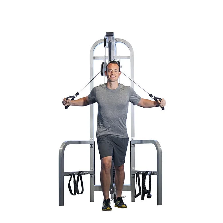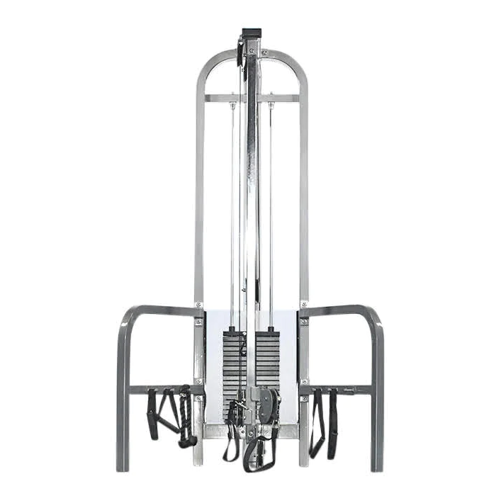 Hi / Low Pulley Combo Machine – Muscle D Fitness (MDD-1010) – The Muscle D Hi / Low Pulley Combo Machine is a functional training machine with weight stack designed to perform both upper and lower body cable exercises. A dual pulley combo cable machine adds a ton of versatility to your training. The MDD-1010 features a split cable design that that is attached to a centralized cable column with multiple height settings throughout. Set the cables high for upper body exercises such as cable crossovers, tricep pushdowns, chest presses and cable crunches. Adjust the pulleys to mid column for wood choppers, rows and rear delt training. Adjust the pulleys to the lowest position for leg exercises like kickbacks, adduction and abduction as well as upper body exercises including bicep curls, tricep kickbacks and much more. The MDD-1010 frame is rock solid and is fabricated from heavy-gauge steel tubing. Cable attachments shown in images are included.