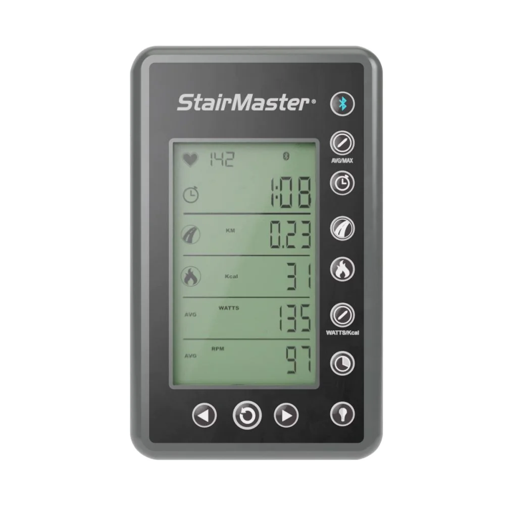 The StairMaster HIIT Console makes great HIIT workouts even more effective. Track your workout with detailed metrics, follow one of the built in workout programs, and connect you phone via Bluetooth to save and share your workout. The console also comes equipped with ANT+ giving you the ability to pair with heart rate trackers and connect to group displays. The HIIT