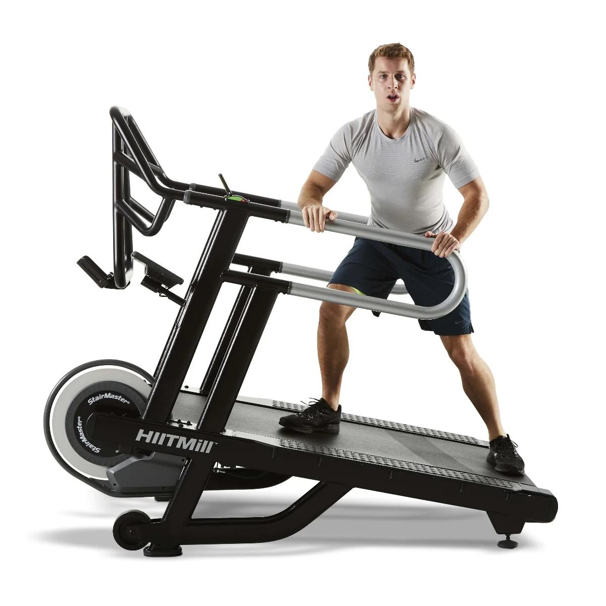 StairMaster HIITMill and HIITMill X Non-Motorized Incline Treadmills – The HIITMill by StairMaster is a self-powered, non-motorized treadmill with fixed incline designed to develop speed, strength, and explosive power when used in a HIIT High Intensity Interval Training Program. The StairMaster HIIT Mill and HIIT Mill X will deliver an effective resistance training platform that drives up metabolic intensity and captures the benefits of speed and agility training, lateral training and sled training. Users can now safely push, pull, drive and sprint with the resistance of a sled but work within a smaller footprint. The HIITMill is aesthetically appealing to athletes at all levels of sport – professional, college, CrossFit, and UFC athletes. The HIITMill manual treadmill also invites simple activities with little to no learning curve such as walking on an incline, running hill sprints, or hiking with light resistance for general cardio training.