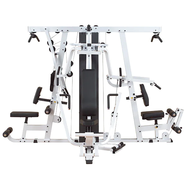 Body-Solid EXM4000S Home Gym – Twelve hardworking exercise stations at one affordable price. The Body-Solid EXM4000S is designed for those who demand the ultimate gym package. It offers an enormous range of upper and lower body exercises for maximum muscular strength, total body conditioning and superior endurance. Up to four people can work out simultaneously with the optional Leg Press / Calf Press Station. It fits comfortably against a wall or on display in the center of the room. The exercise stations are fed by three 210 lb. steel alloy weight stacks and a fourth weight stack comes with the Leg Press Station.