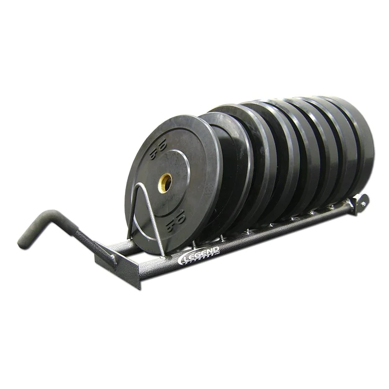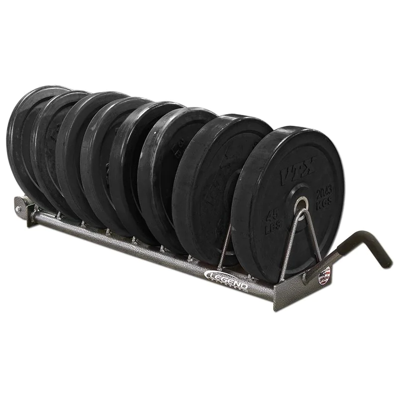 Legend Fitness 3163 Horizontal Bumper Plate Storage Rack – The Legend Fitness 3163 is the perfect solution for rubber bumper plate mobility in commercial gyms. This portable bumper plate storage rack features an easy-grab handle with rubber non-slip grip in the front and wheels in the back for easy transport over concrete and rubber flooring. Easily transport up to (8) 45 lb. (360 lbs.) bumper plates to any location of the gym and easily fits between power cages and weightlifting platforms. The 3163 offers easy access to plates from either side and is compatible with both rubber encased and solid rubber bumper plates. Made In The USA from fully-welded heavy-guage steel, this rack arrives ready to use and is maintenance free. Perfect for school weight rooms, CrossFit boxes and commercial gyms.