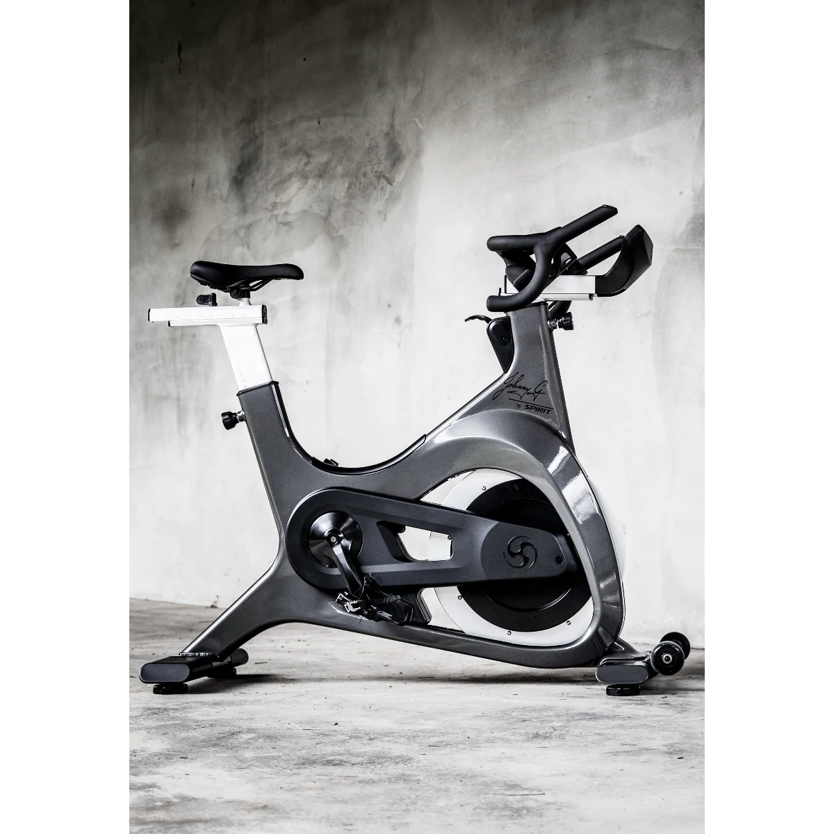 Johnny G Spirit Bike by Spirit Fitness – The Johnny G Spirit Bike from Spirit Fitness is a premium commercial-grade indoor cycling bike for performing authentic cycle training workouts and cardiovascular exercise in a group fitness setting or in the comfort of one’s own home. The Johnny G Spirit Bike is an indoor training bike like no other, drawing from the rich fitness history surrounding indoor cycling pioneer and visionary Johnny G himself and boldly forging into the future. The Johnny G Spirit Bike is the “next generation” evolution of the classic indoor cycling bike, taking Johnny G’s legendary commercial indoor cycling training program developed in 1987 to new levels with a forward-thinking bike design that envisions style, sophistication, ergonomic design, and performance like no other for the modern fitness age. The electronically-controlled, magnetic resistance system allows users to duplicate, replicate and differentiate their training sessions. Performance metrics are accessible at all times on the high-visibility LED display. The cockpit-style console has been strategically crafted to transport you into an elevated state of performance. The Johnny G Spirit Bike stays true to its inventor’s namesake by incorporating his love for biking, technology, and design and by celebrating the integration of mind and body. Maximize your own potential and empower yourself to cultivate a life of passion, health and happiness through sport.