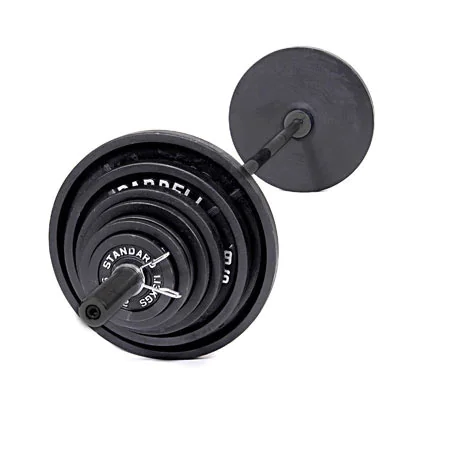 CAP Barbell Old School Standard Barbell Olympic Weight Set with Charcoal Plates – The Standard Barbell brand of weight sets brings back memories of working out at home or at school with your friends all trying to best each other with a one rep max on the bench press. Those days are unfortunately gone for most but these reliable Standard Barbell sets still remain one of the most economical and easily obtainable Olympic weight lifting sets on the market. Their affordability makes them ideal for home gyms, garage gyms, school weight rooms and gyms. Each set includes charcoal Olympic cast iron plates in 2.5, 5, 10, 25, 35 and 45 lb. sizes, a black oxide 7′ Olympic bar and a set of chrome Olympic spring collars. When your set arrives it is ready to start packing on muscle and increasing strength.