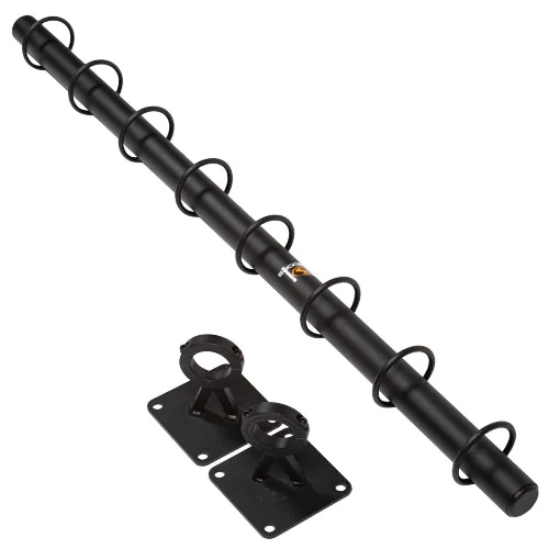 - 48″ tall. 8″ out from wall. Anchor rings every 6″.