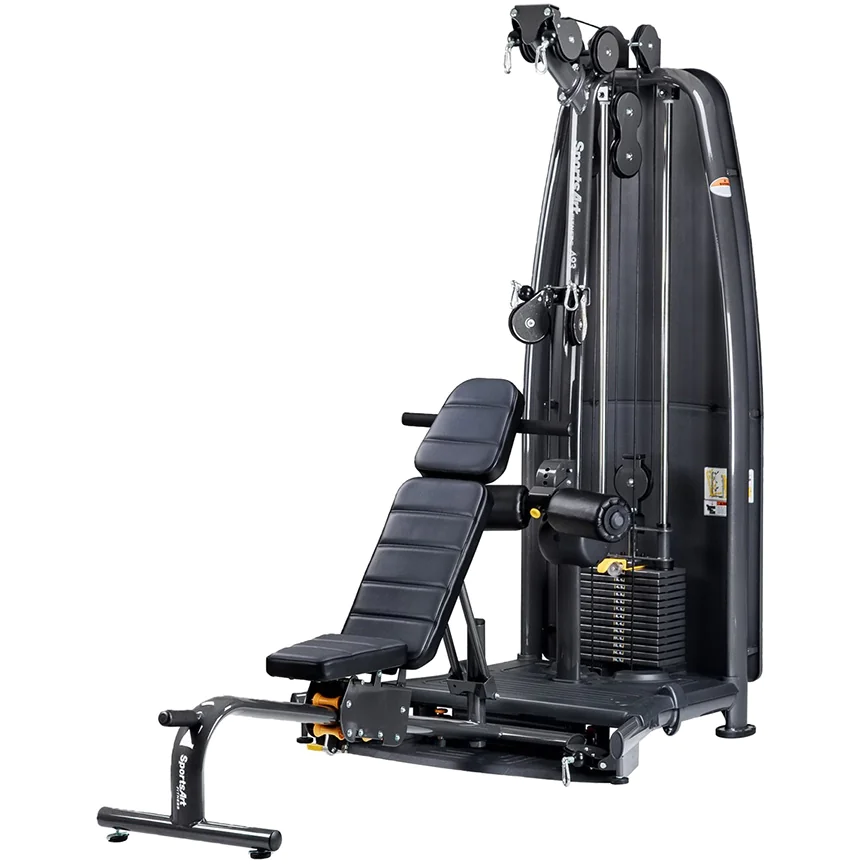 SportsArt A93 Functional Trainer with Bench The Performance Series A93 Functional Trainer from SportsArt is a workout tower with a single column selectorized weight stack and three sets of cable pulleys in high, mid, and low positions for performing a variety of strength training exercises and sport specific functional training movements. The SportsArt A93 Functional Trainer offers nearly unlimited options for total-body training, allowing users to quickly and easily switch between upper body exercises, lower body exercises, and exercises for core and midsection. The A93 features SportsArts own Total Motion Technology since all 3 sets of pulleys are rotational, they deliver a wider variety of exercises and more effective training angles than other functional trainers. The multi-angle bench quickly and easily adjusts from flat position, to multiple incline positions, to shoulder press position for traditional muscle building exercises such as bench press, shoulder press, bicep curls, and back rows. Easily roll the bench away from the tower to perform standing exercises utilizing three pulley height positions. The variety of cable accessory handles and high range of rotational pulley movement allow sports training towards improved game performance for golf, tennis, baseball, and other recreational sports. All components are commercial grade and come directly from SportsArt’s world-class health club strength products to make the A93 Functional Trainer perfect for any home gym, hotel workout center, personal training studio, or corporate wellness facility.
