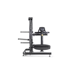 SportsArt A976 Plate Loaded Series Leg Extension Machine – The A976 Leg Extension from SportsArt Fitness is a commercial plate loaded strength machine for lower body training which targets and develop the quadriceps muscles of the upper leg. The leg extension exercise for quads is performed on the A976 in a seated position at a slight angle to reduce lower back stress. Thickly cushioned roller pads ensure comfort on the ankles and lower shin during extension of the leg. Since the leg lever arms move independently of one another, the user can either perform a dual leg extension with both legs engaged at once, or single leg extensions for isolation of the quadriceps muscle on one side only. The adjustable back pad means a broad range of user heights can be accommodated. The A976 Plate Loaded Leg Extension Machine allows you to use Olympic plates with a 2″ center hole for resistance. Load your plates onto the angled weight horns on each leg lever arm. The upward angle keeps plates safely in place during use. The A976 has a 500 pound maximum weight load rating for heavy duty leg training. The welded heavy-duty steel frame has stylish, sleek lines and curves created through oval tube steel. Major frame pieces bolt together allowing easier transport prior to assembly. Electrostatic powder coating insures the finish is resistant to scratches and dings for a long term beautiful finish. Heavy-duty vinyl cushions are comfortable and durable for club use. Rubber non-skid feet cover base frame supports to avoid sliding of machine or scratching of floors. All components are commercial grade on SportsArt’s world-class health club strength products to make the A976 Leverage Leg Extension Machine perfect for any commercial gym, fitness center, home gym, hotel workout center, personal training studio, or corporate wellness facility. The SportsArt Plate Loaded Series combines quality and value in a simple, easy-to-use free weight strength line designed to accommodate users of any fitness or experience.