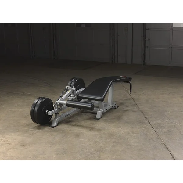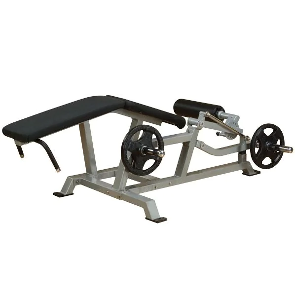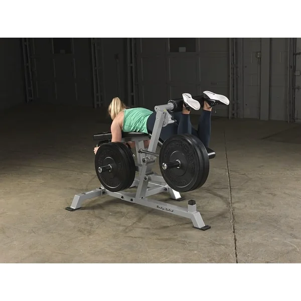 Body-Solid LVLC Pro ClubLine Leverage Leg Curl – The LVLC Leverage Leg Curl by Body-Solid is a commercial rated strength machine which uses plate loaded resistance and leverage movement to isolate and strengthen the hamstring muscles of the lower body when performing the lying leg curl exercise. The Body-Solid LVLC provides the natural feel and resistance of free-weights with the control of a machine. The direct link movement arm allows a full and continuous range of motion and the downward angled V-bench design reduces stress on the lower back as well as forces on the knees during heavy sets. Load up this machine with Olympic weight plates or Olympic bumper plates for resistance, and store them on the convenient weight storage post at the front of the machine when not in use. The LVLC Leverage Leg Curl is perfect for any commercial gym, school weight room, personal training studio, or home gym.