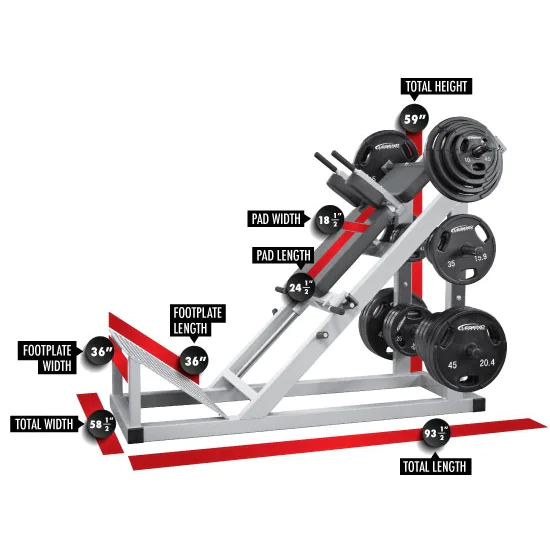Legend Fitness 3123 Plate Loaded 35 Degree Hack Squat – The hack squat is a great lower body strength machine that can be easily integrated into your barbell squat and leg press training for maximum power and mass development. Hack squats have proven to be a useful training tool for the athlete, weightlifter and bodybuilder for targeting the quads and glutes. The hack squat allows the user to perform a weight bearing squatting movement while set at a 35 degree angle. The weight carriage that holds the Olympic plates and includes pads that rest on the shoulders of the user, rides on a combination of linear bearings and steel guide rods for friction free travel. The hack squat exercise effectively isolates the quads while reducing lower back strain which means they can also be used for rehabilitation training or by those with lower back injuries that cannot perform barbell squats. Most commercial weight rooms will features at least one hack squat for their members to train with.
