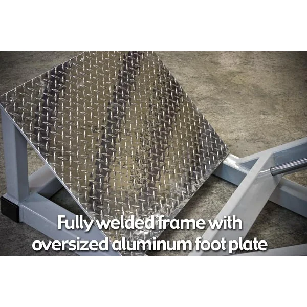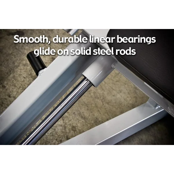 Why choose the Legend 3123 hack squatting machine? The Legend 3123 is smooth as silk featuring a 75 lb. weight carriage that travels at a 35 degree angle on commercial linear bearings and steel alloy guide rods that are case hardened for years of high performance. The large footplate is made from heavy polished aluminum with a diamond plate pattern that offers plenty of grip. Heavy lifters will be able to pile on the Olympic weight plates with the 11 long weight sleeves. The construction of the Legend linear bearing hack squat boasts a shipping weight of 716 lbs. from USA Made and Fabricated 3 x 3 and 4 x 2 structural steel with a wall thickness of 11 gauge (.120). Protecting the raw structural steel is your choice of DuPont powder coating that is chip resistant and tough as nails.
