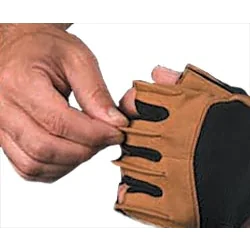 usually have a diamond pattern knurling to provide a better grip for the user. Sometimes this knurling pattern can be sharp and abrasive to the skin causing painful blisters and calluses. Many people prefer to wear weightlifting gloves during their workouts to avoid this type of damage to their hands. Hi rep kettlebell training is another culprit that can quickly cause blisters to pop up even though these handles are usually smooth and do not have knurling. For the weight lifters that like to perform heavy pressing movements with a barbell or dumbbells, the gel padded palm of the 415 glove reduces pinch points by better disbursing the weight of the bar throughout the palm allowing lifters to concentrate more on the muscles they are training rather than the discomfort in their hands. And for those that work hard in the gym, hands will get sweaty and slippery! Sweaty hands reduce gripping power and can even lead to injury. The 415 glove puts a barrier between sweaty hands and the bar and greatly increases gripping power which means more weight, more reps and more gains!