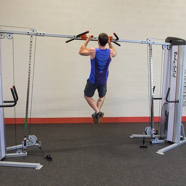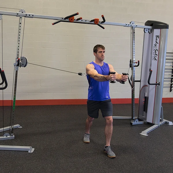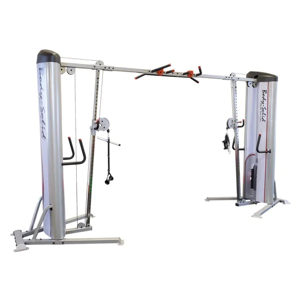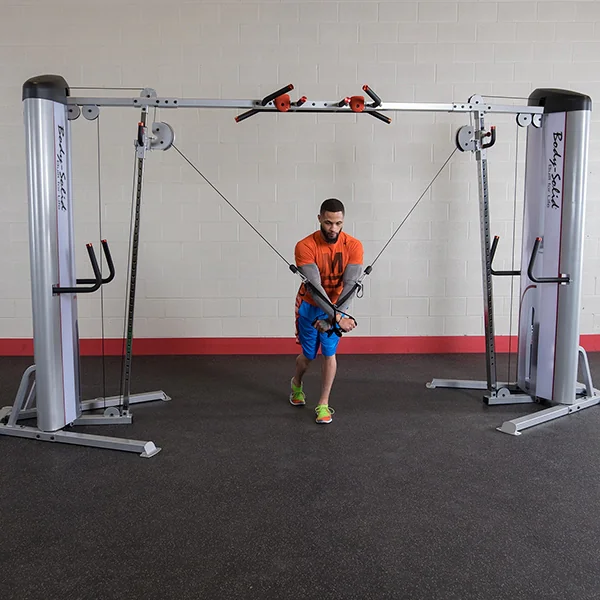 Body-Solid ProClub Line Series II Cable Crossover The Pro ClubLine Series II S2CCO from Body-Solid is a cable crossover machine with adjustable high to low pulleys and two selectorized weight stacks for functional strength training. The weight stacks are available in three sizes (160, 210 and 310 lbs), each offering 1/2:1 resistance which allows manageable incremental weight changes for smaller muscle groups targeted during isolation exercises and unilateral strength training. The S2CCO offers a virtually unlimited range of exercise possibilities for all experience levels. 36 independent pulley carriage height adjustments along each cable column allow users to perform any number of high-pulley, mid-pulley or low-pulley exercises including pec flys, low rows, overhead shoulder presses, ab crunches, tricep pressdowns, biceps curls, and more. The adjustable pulleys each swivel 180 degrees, increasing both the range of motion and variety of exercise options. The extra wide and tall mainframe provides easy access and ample room to accommodate individual exercisers working out on opposite cable columns. The S2CCO Cable Crossover includes two nylon cable handles with three length adjustments, a straight bar with swivel attachment for low rows, curls, and triceps press downs, and an ankle cuff for performing leg exercises for the inner and outer thighs, glutes, and quadriceps. Attach any number of optional handles and cable accessories to this universal machine and open up a whole new world of movements for sports performance training and injury rehabilitation. The S2CCOs functional versatility, simple adjustments, and full commercial warranty make it an ideal fit in any garage gym, fitness training studio, rehabilitation clinic, or commercial gym setting.