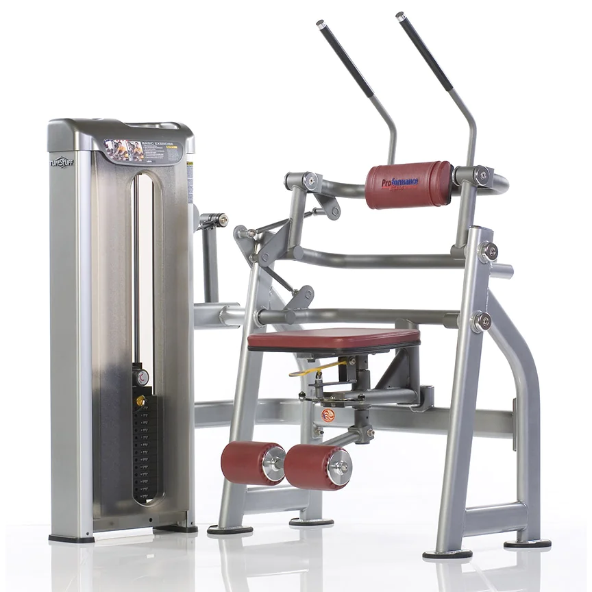 The Proformance Plus Abdominal Crunch offers a myriad of features most other machines lack. As a result, it confers all the advantages of free weight crunches mentioned above along with the comfort and ease of use of a selectorized machine. The unique design of this machine permits users of different heights to begin without any adjustment to the seat or movement arms. Three points of rotation means you will not just crunch your torso toward your knees as with a typical machine crunch. You will simultaneously lift your knees toward your shoulders, creating a more intense contraction in the lower abdominal muscles and greatly improving the effectiveness of the exercise. For the intercostals and obliques, five-way seat positioning with an easy pull-pin adjustment enables you to hit your abs from different angles.