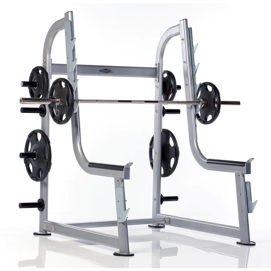Proformance Plus PPF-850 Squat Rack – The Proformance Plus Squat Rack by TuffStuff is a versatile addition to your gym that can be used to perform some of the most basic mass building lifts such as squats, standing and seated presses and shrugs. Squats, and squat variations like front squats, are perhaps the primary lifts in any athletes training program. The leg and hip power developed through squatting will transfer to almost any sport or recreational activity.