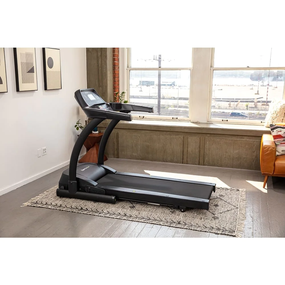SportsArt TR22F Residential Folding Treadmill – The new SportsArt TR22F residential folding treadmill is the perfect treadmill for limited spaces, with it’s QuickFold deck and powerful motor the TR22F will meet user needs and neatly store away when not in use. The TR22F offers a large running surface (20″ x 58″) and shock absorbing deck cushion. The durable 2.8 HP motor gives it a speed range of 0.5-10.0 mph, incline range of 0-15% and a maximum user capacity of 350 lbs. The white backlit display includes Track, Hill, Glute, Interval, Custom HR, Weight Loss HR and Cardio HR workout programs with Speed, Pace, Calories, Calories/Hour, Incline, Distance, Time and Mets readouts. The TR22F folding treadmill by SportsArt is a solid investment for any home gym workout program.