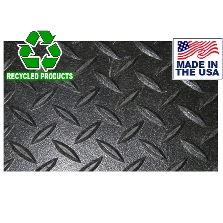 IRON COMPANY® USA Made Diamond Plate Rubber Flooring Rolls offer a uniquely formulated 50/50 combination of recycled rubber and plastic. While most